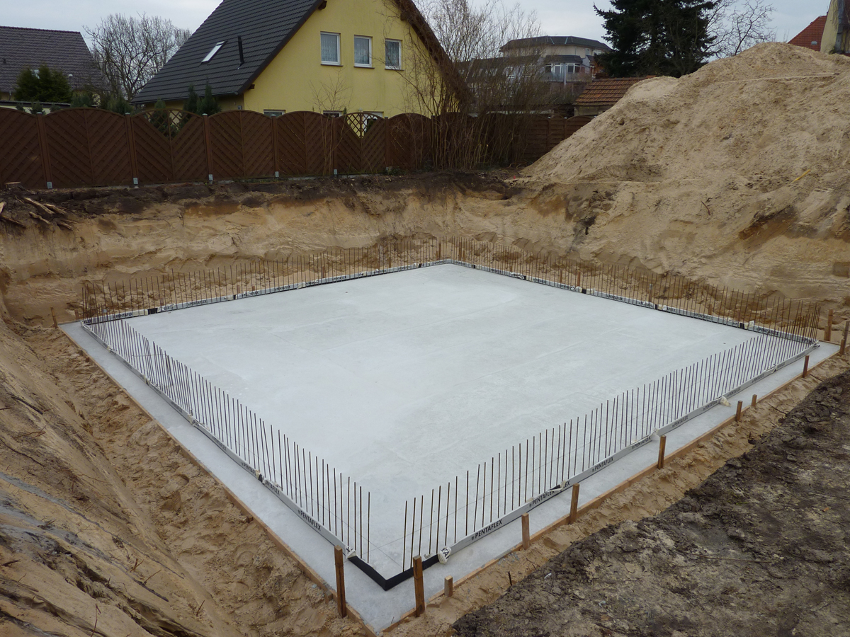 Die Basis eines jeden Hauses ist das Fundament – auch Bodenplatte genannt. Dies ist das tragende Element eines Hauses.